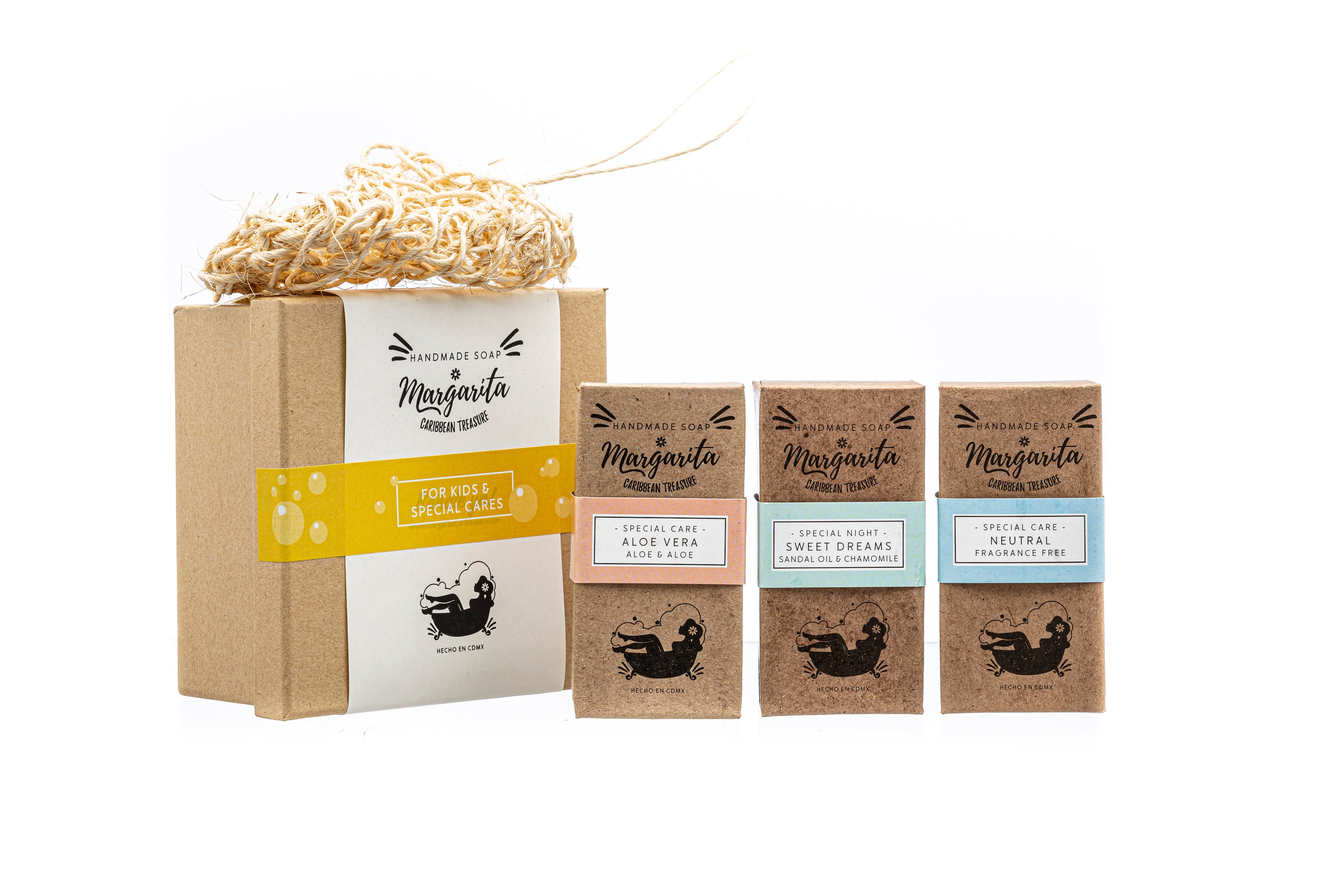 3 jabones de glicerina diseñados con esencias naturales, recomendadas para pieles delicadas, sensibles o de bebés.